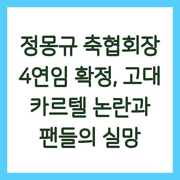 정몽규 회장의 4연임은 한국 축구계의 고질적인 문제, 즉 기득권 구조와 폐쇄적인 운영 방식 을 여실히 드러냅니다. 85.2% 라는 높은 득표율은 현 축구계의 권력 구조를 적나라하게 보여주는 수치 입니다. 정말 씁쓸한 현실이 아닐 수 없습니다.