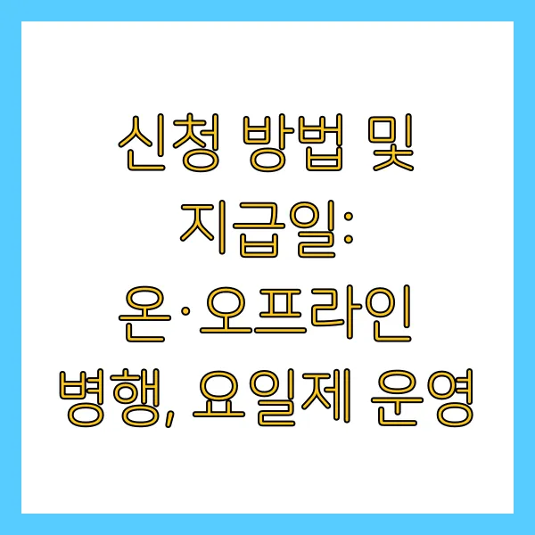 신청 방법 및 지급일: 온·오프라인 병행, 요일제 운영