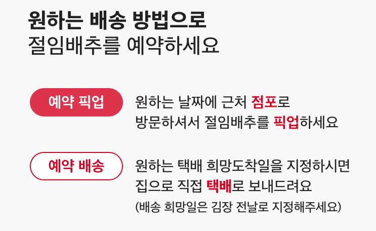 예약한 절임배추는 두 가지 방법으로 받을 수 있어요