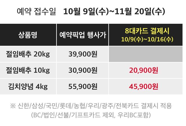 2024년 홈플러스 절임배추 사전예약은 10월 9일부터 11월 20일까지 진행됩니다.