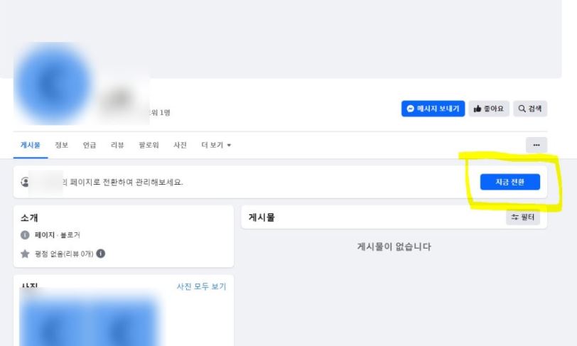 해당 페이스북 페이지의 관리자로 전환해요