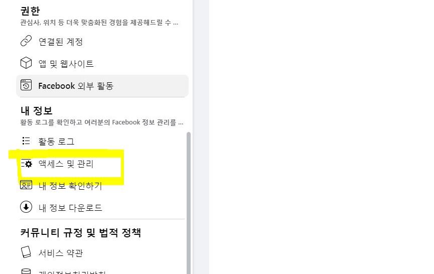 스크롤을 아래로 내려서 내정보에 있는 액세스 및 관리하기를 클릭해주세요