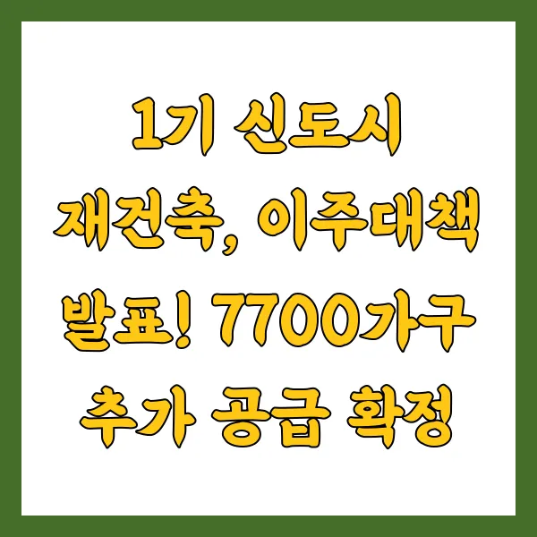 1기 신도시 재건축이 드디어 시동을 걸었습니다! 하지만 갑작스러운 이주 수요 폭증?! 걱정 마세요! 정부가 7700가구 추가 공급 이라는 든든한 이주대책을 발표했습니다. 주택 시장 안정은 물론, 재건축 사업도 탄력 받을 전망입니다. 자세한 내용, 지금 바로 확인하세요!