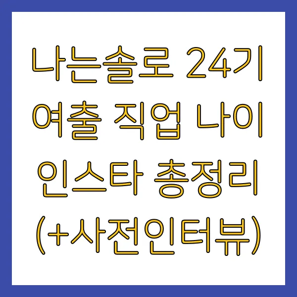 2024년 방송된 나는 솔로 24기 돌싱 특집! 여섯 명의 여성 출연자들의 매력 대결과 솔직 당당한 사전 인터뷰로 시청자들의 뜨거운 관심을 받았습니다. 영숙, 정숙, 순자, 영자, 옥순, 현숙까지! 이들의 직업, 나이, 인스타그램 정보와 함께 숨겨진 매력을 낱낱이 파헤쳐 보겠습니다. 과연 최종 커플은 누가 될까요? 지금 바로 확인하세요! (나는 솔로, 나는솔로 24기, 나는솔로 돌싱특집, 나는솔로 여출, 나는솔로 인스타)
