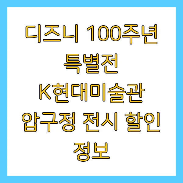 꿈과 마법의 세계, 디즈니! ✨ 그 100년의 역사를 기념하는 특별전이 K현대미술관 압구정에서 펼쳐집니다. 미키 마우스부터 겨울왕국까지, 시대를 초월한 감동을 선사하는 전시! 풍성한 할인 혜택과 함께 디즈니의 100년을 만나보세요. 놓칠 수 없는 기회, 지금 바로 확인하세요! #디즈니 #전시회 #할인정보 #K현대미술관 #압구정 #100주년 #문화생활 #겨울왕국 #미키마우스 #마블