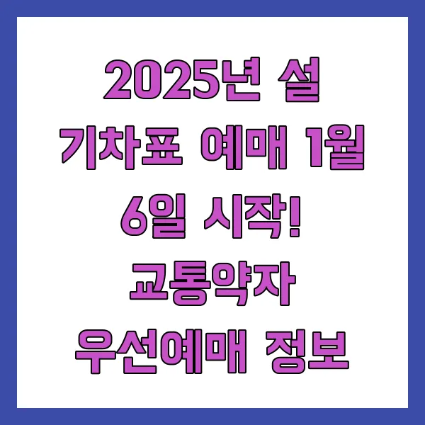 2025년 설 연휴, 가족과 함께하는 따뜻하고 행복한 시간을 위해 기차표 예매 전략, 지금부터 꼼꼼하게 세워보세요! 이 포스팅에 담긴 꿀팁들을 활용하여 원하는 기차표 100% 확보, 편안하고 즐거운 귀성길을 만들어 보세요! 😊 모두 새해 복 많이 받으세요!