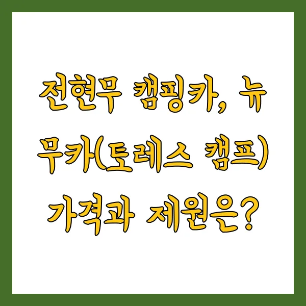 전현무 씨의 뉴 무카, 토레스 캠프는 캠핑과 일상의 조화를 꿈꾸는 캠퍼들에게 훌륭한 선택이 될 것입니다. 2024년 캠핑카 시장의 핫 아이콘으로 떠오른 토레스 캠프, 당신의 캠핑 라이프에 새로운 활력을 불어넣어 줄 것입니다
