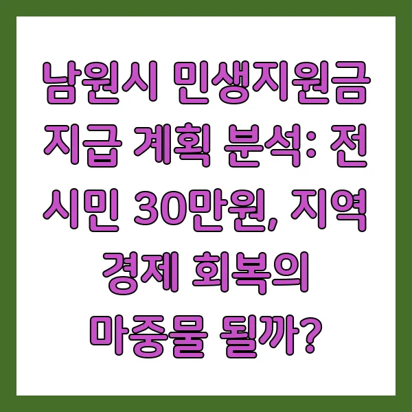 남원시 민생지원금 지급 계획 분석: 전 시민 30만원, 지역 경제 회복의 마중물 될까?