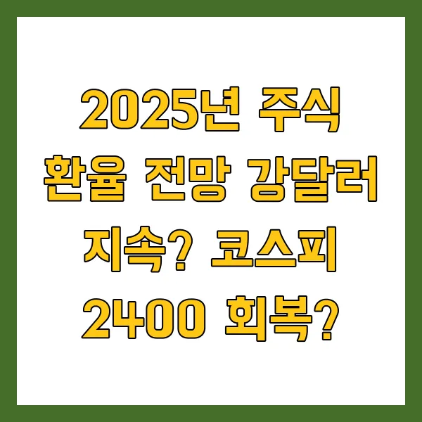 2025년 경제 전망은 불확실성이 높지만 긍정적 요인과 부정적 요인이 공존합니다. 강달러 기조와 글로벌 경기 둔화 우려는 투자 심리를 위축시킬 수 있지만, 국내 기업들의 견조한 실적과 미래 유망 산업의 성장 가능성은 투자 기회를 제공합니다. 분산 투자, 장기적 관점, 데이터 기반 투자 전략을 통해 2025년 경제 위기를 기회로 만들어 보세요! 해외 IB들은 원/달러 환율을 1분기 1435원, 2분기 1440원, 3분기 1445원으로 전망하며 1년 이상 고환율 지속을 예상하고 있습니다. 이러한 전망을 참고하여 신중한 투자 전략을 수립하는 것이 중요합니다.