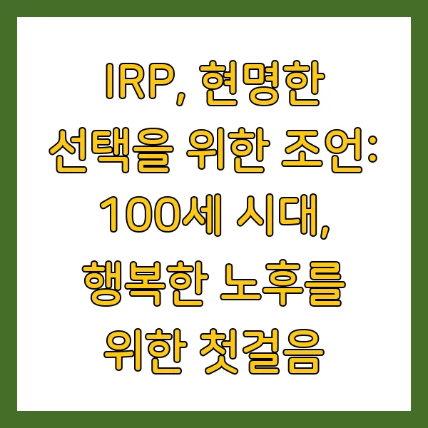 IRP, 현명한 선택을 위한 조언: 100세 시대, 행복한 노후를 위한 첫걸음