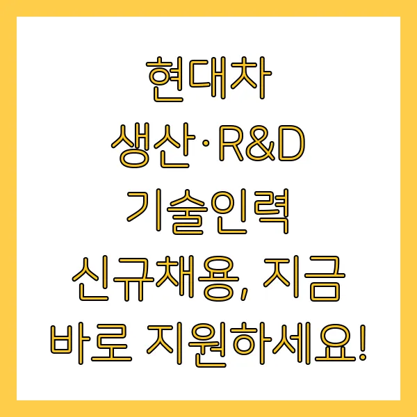 2025년 상반기, 현대차와 함께 혁신의 드라이브를 경험할 생산 및 R&D 분야의 핵심 인재를 찾습니다. 자동차 산업의 미래를 설계할 기회, 지금 잡으세요! #현대자동차 #채용 #모빌리티 #R&D #생산기술 #취업