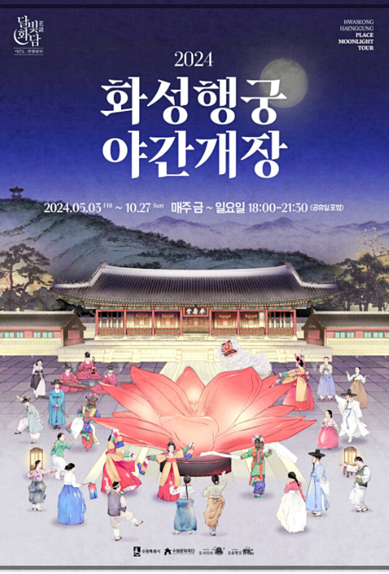올해 야간개장은 행궁의 2단계 복원을 축하하는 의미를 담은 달빛화담 시즌2 연향이라는 컨셉으로 진행된다고 합니다. 달빛화담 시즌2 연향의 컨셉을 보시려면 매주 금~일요일에만 야간개장하여 볼수 있다고 합니다.